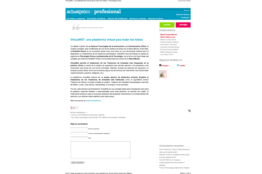 Servicios de gabinete de prensa , contenidos periodísticos y comunicación en internet.